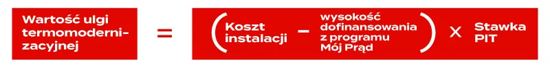 Wysokość ulgi liczymy na podstawie poniesionych kosztów na instalację, odliczając wartość przyznaną z programu Mój Prąd oraz stawki podatkowej według której rozlicza się klient.
