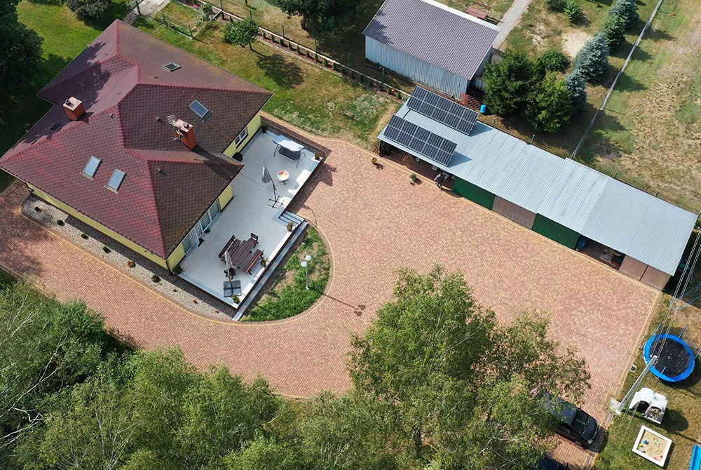 System fotowoltaiczny w Błonie Wieś - Instalacja fotowoltaiczna o mocy 4,96 kW składająca się z wydajnych 16 paneli fotowoltaicznych i inwertera GoodWee - serca instalacji fotowoltaicznej zapewniające zmianę prądu stałego w zmienny..
