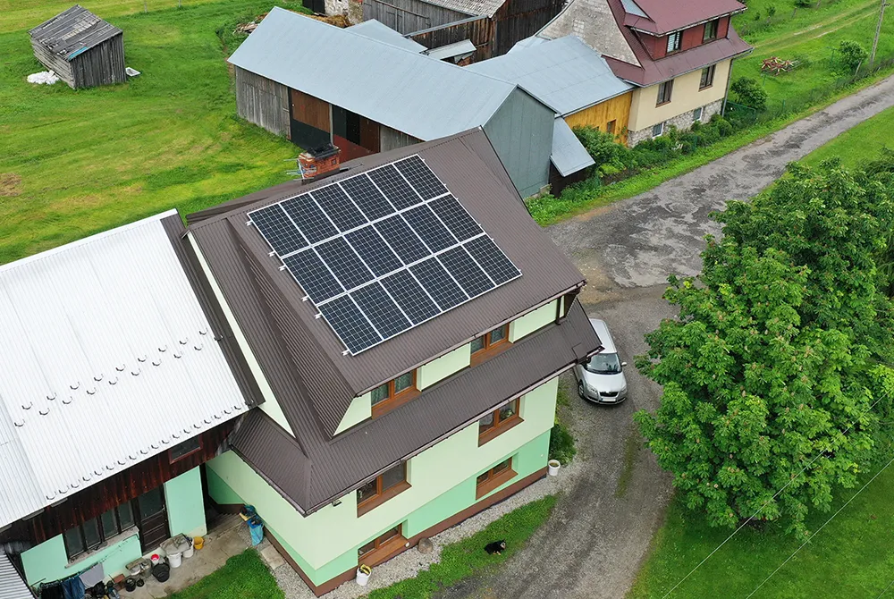 System fotowoltaiczny w Chrzanowie Małym - Instalacja fotowoltaiczna o mocy 4,96 kW składająca się z wydajnych 16 paneli fotowoltaicznych i inwertera GoodWee - serca instalacji fotowoltaicznej zapewniające zmianę prądu stałego w zmienny.